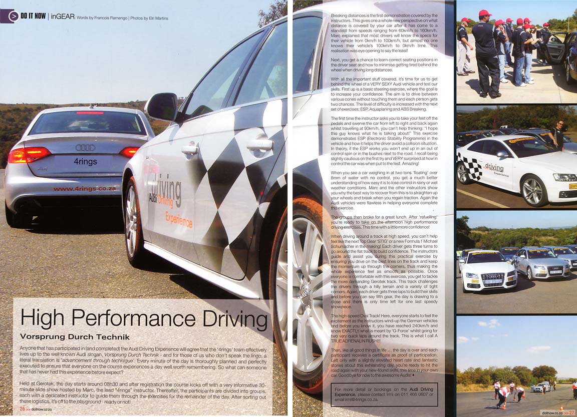 A selection of press articles which we earned for the Audi Driving Experience as a result of the experience being run a such a high level.