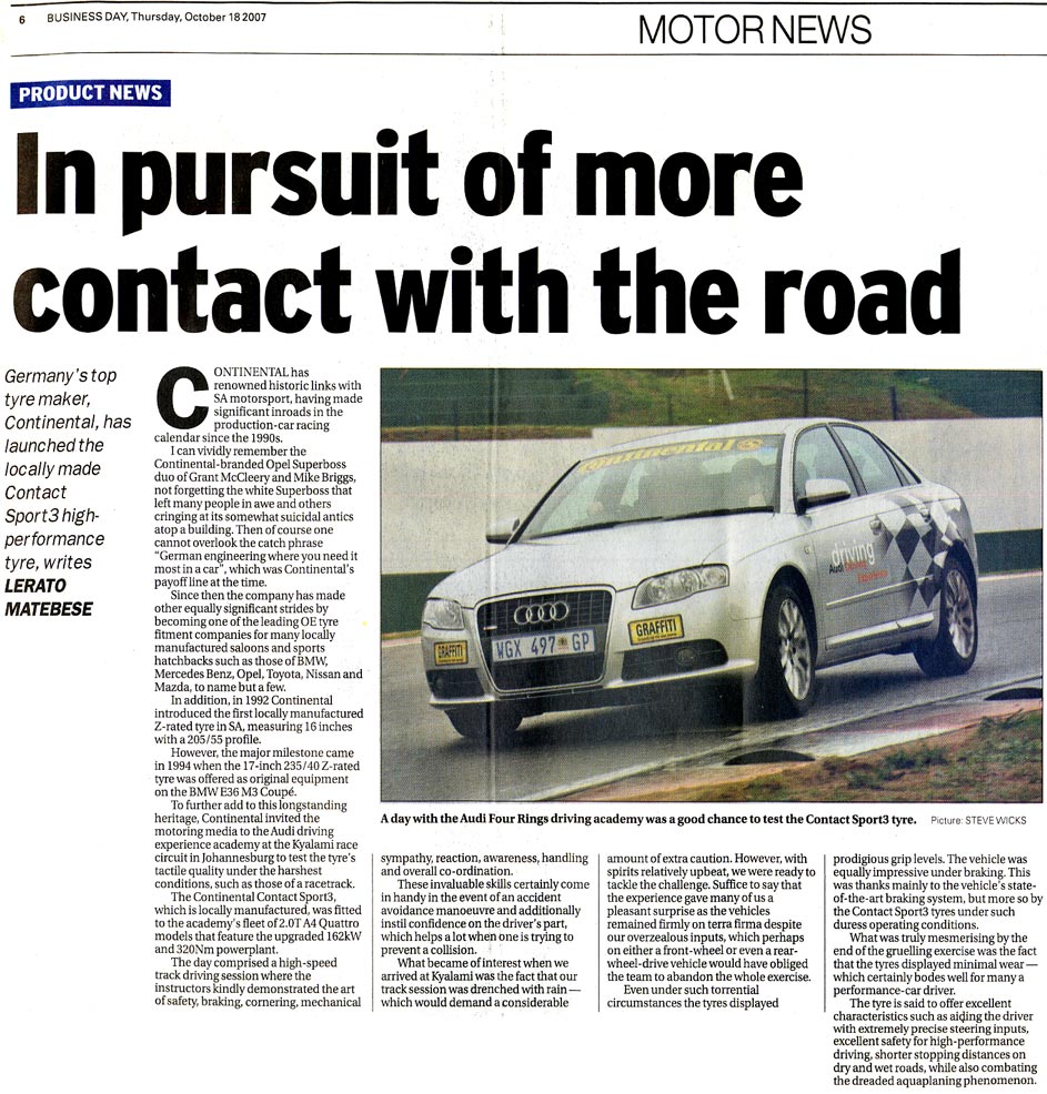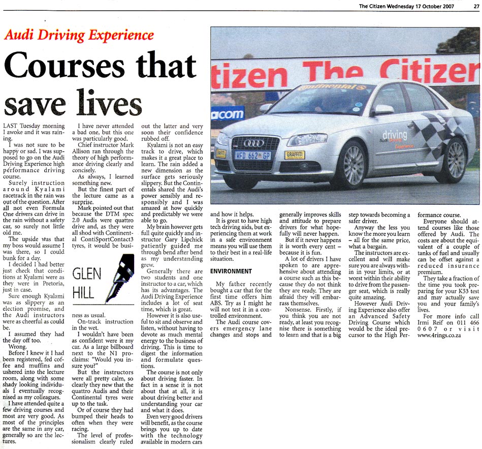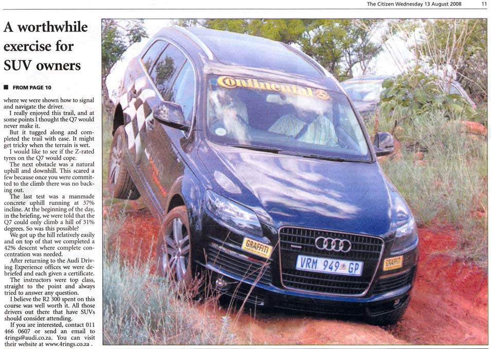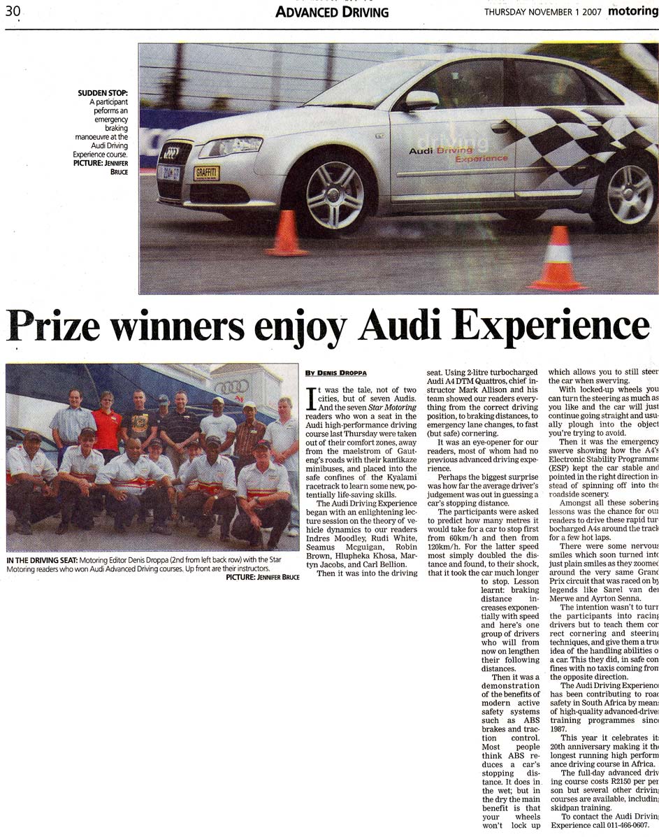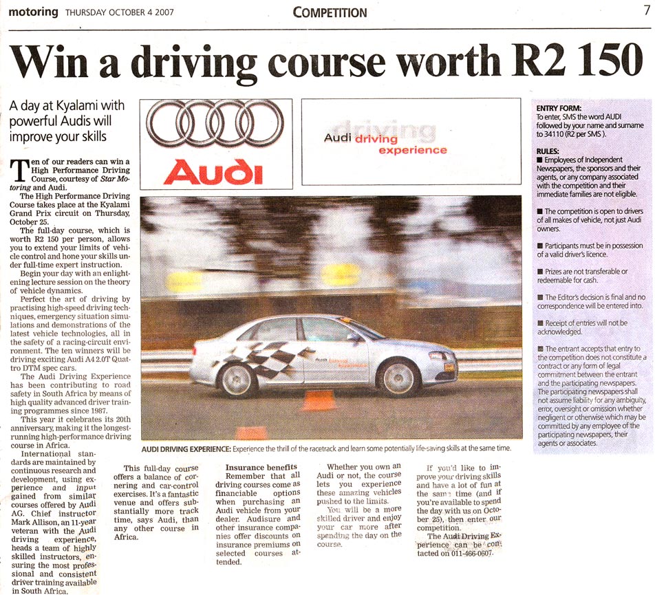 A selection of press articles which we earned for the Audi Driving Experience as a result of the experience being run a such a high level.